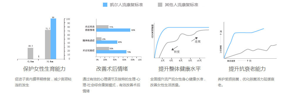 凯尔人流术后服务标准保护女性生育能力:促进子宫内膜早期修复,减少宫颈粘连的发生改善术后情绪:通过有效的心理调节及独特的生理-心理-社会综合康复模式,有效改善术后情绪 提升整体健康水平:全面提升流产后女性身心健康水准,改善女性生活质量。